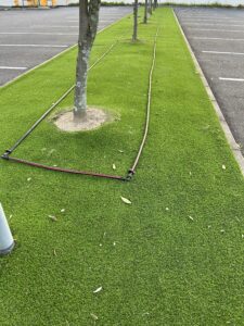 苗を3~4本束まとめて10~15cm間隔に植える。