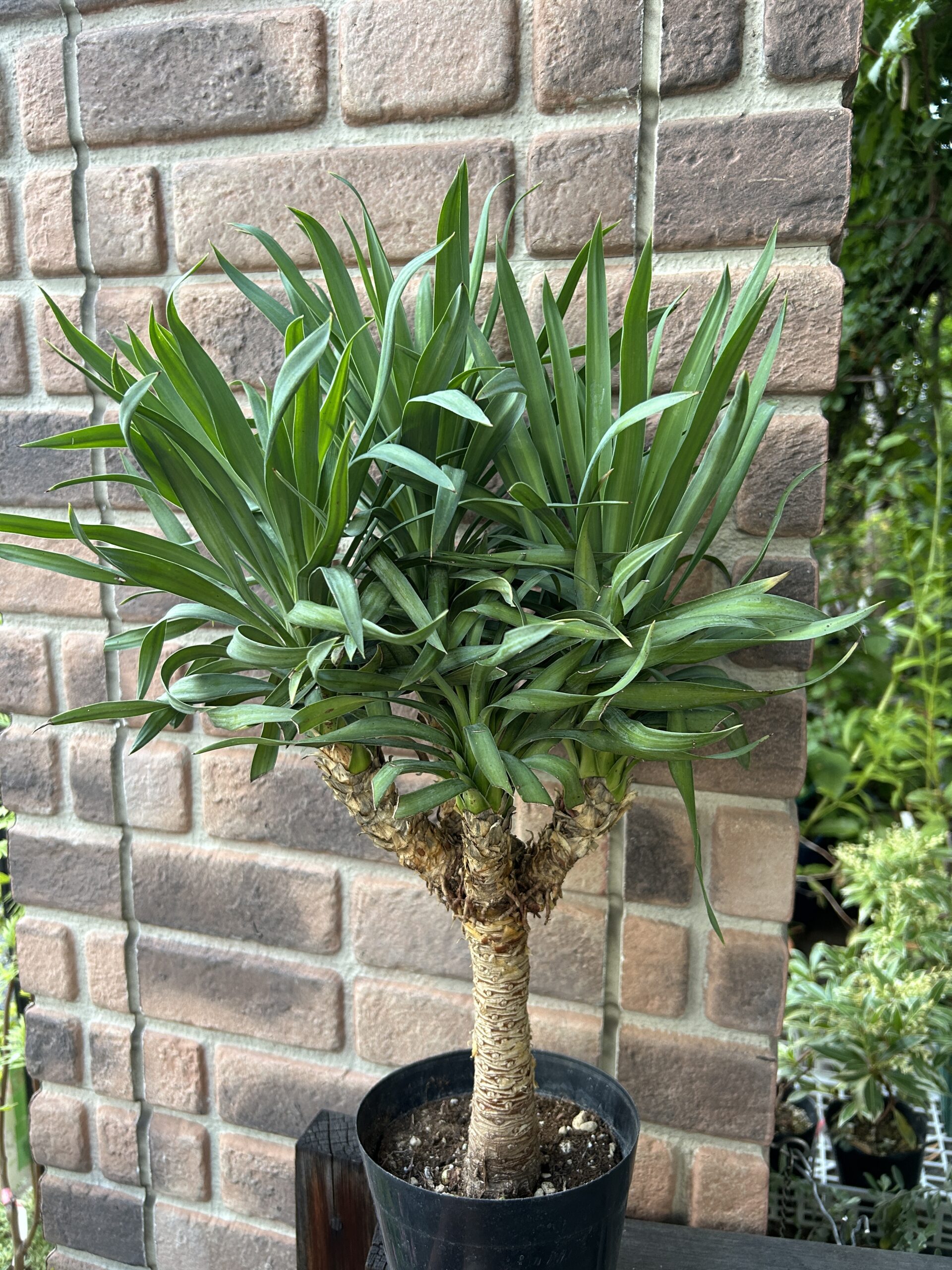 ユッカといえばピンと尖ったものが多い中、尖ってはいるけどこの柔らかな曲がりに惹かれて初めて仕入れました。