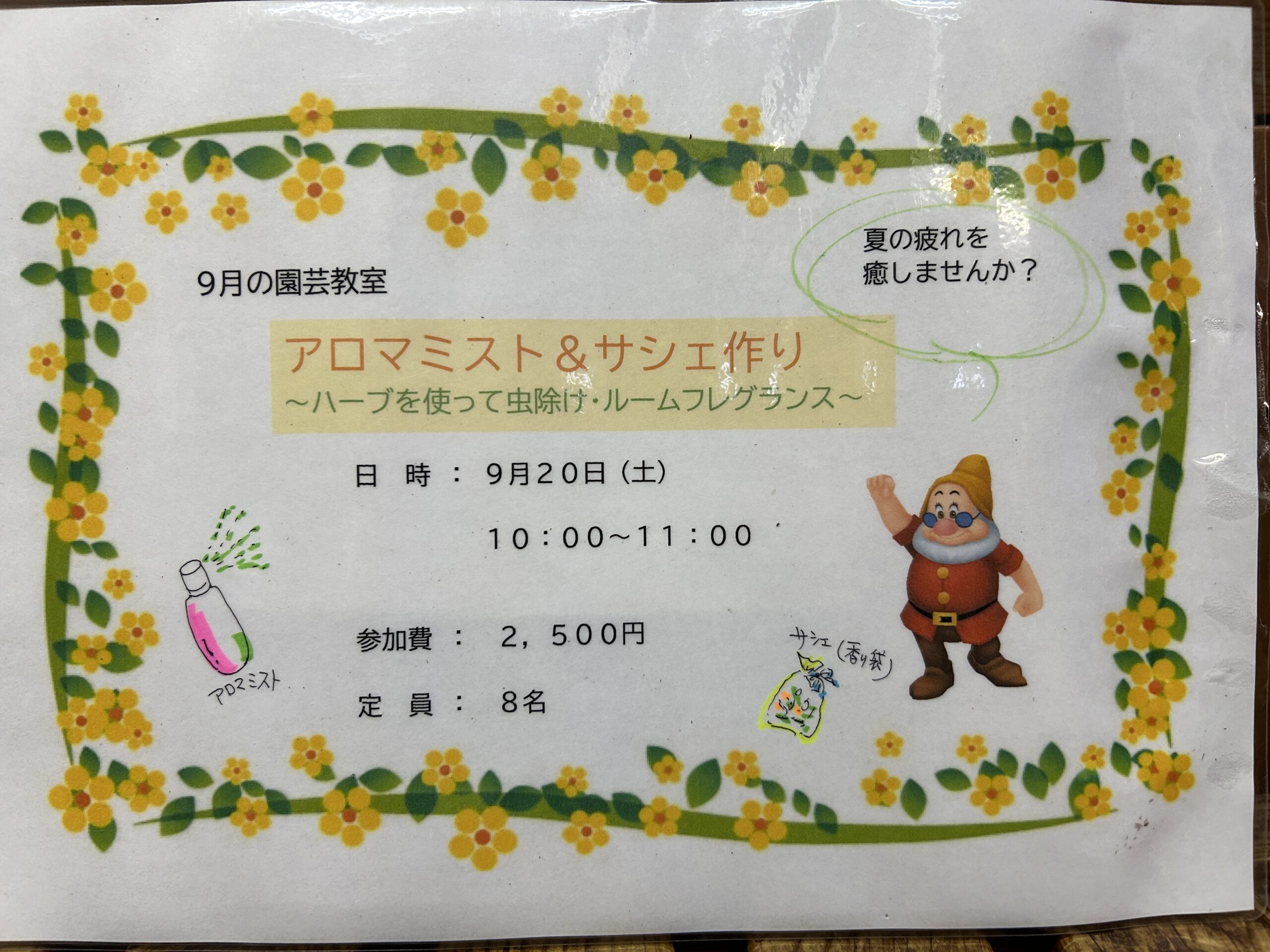 9月園芸教室「アロマミスト&サシェ作り」で夏の疲れを癒しませんか? 2025 11/10 お知らせ 日記 2025年9月13日2025年11月10日 一週間後9月20日(土)園芸教室を行います。 アロマミスト&サシェ作り~ハーブを使って虫除けルームフレグランス~ 夏の疲れがたまる頃、心と身体を癒して秋の楽しいの準備をしましょう。 朝10:00から約1時間になります。 お気軽にご参加ください。 お知らせ 日記 よかったらシェアしてね! URLをコピーしました! URLをコピーしました! ハクサイ オレンジクイン 種まきしました!苗のご予約受付中 明日9/15(月)は敬老の日 日頃の感謝を込めて(胡蝶蘭の管理方法) 関連記事 大工さんとガーデンチェアを組み立て寄せ植えづくり 2025年10月21日 オリーブなどを植えれる鉢なども入荷です! 2025年10月14日 ハロウィンコーナーが出来ました! 2025年10月8日 赤くなる実と紅葉するリーフを楽しむチェッカーベリー 2025年10月5日 トルコギキョウの苗が入荷しましたが、1日で残り僅かになったため再注文致しました! 2025年9月25日 斑入りで育てやすいモンステラ タイコンステレーション 2025年9月22日 白ネギ(ホワイトスター)の苗を植えて鍋に備えましょう! 2025年9月16日 明日9/15(月)は敬老の日 日頃の感謝を込めて(胡蝶蘭の管理方法) 2025年9月14日